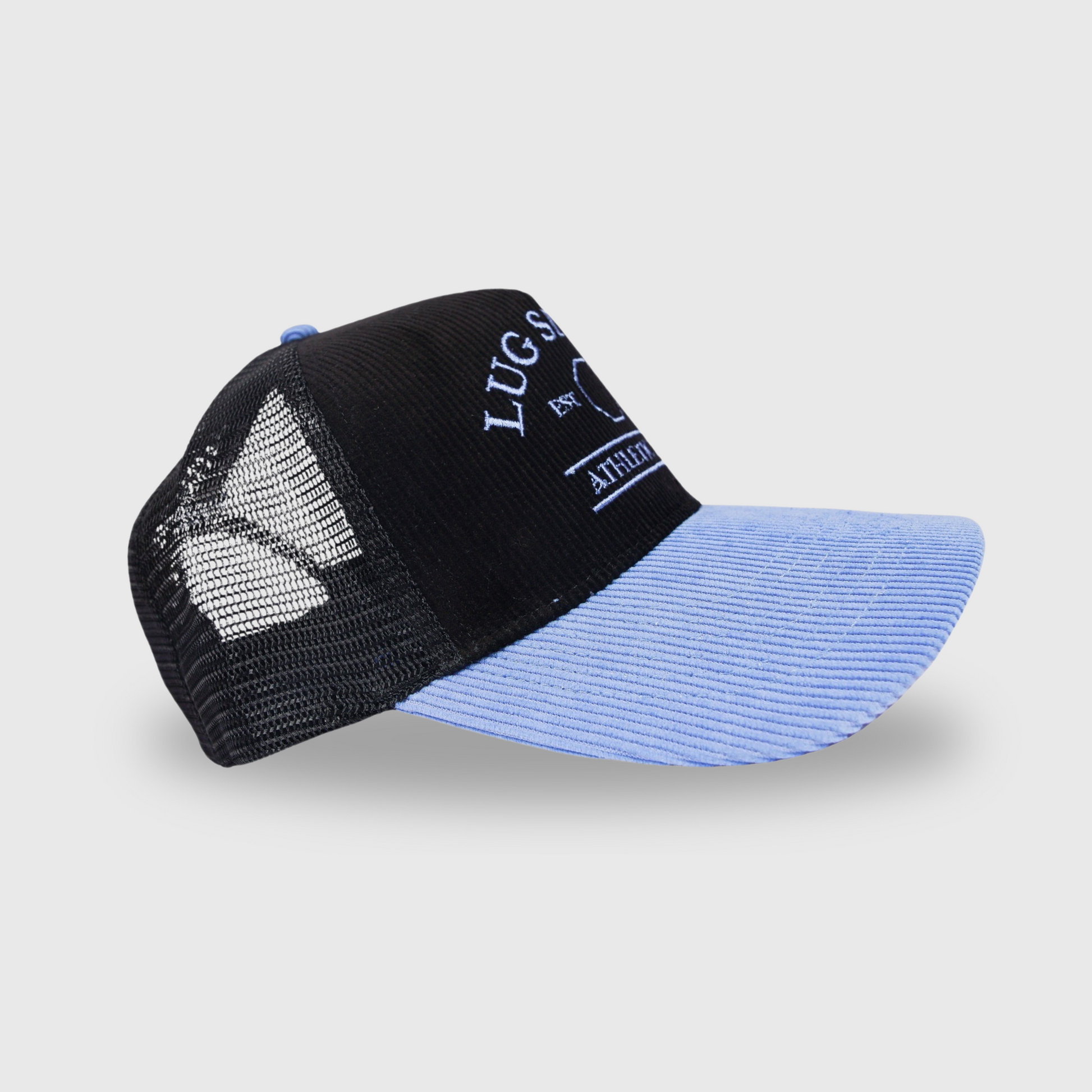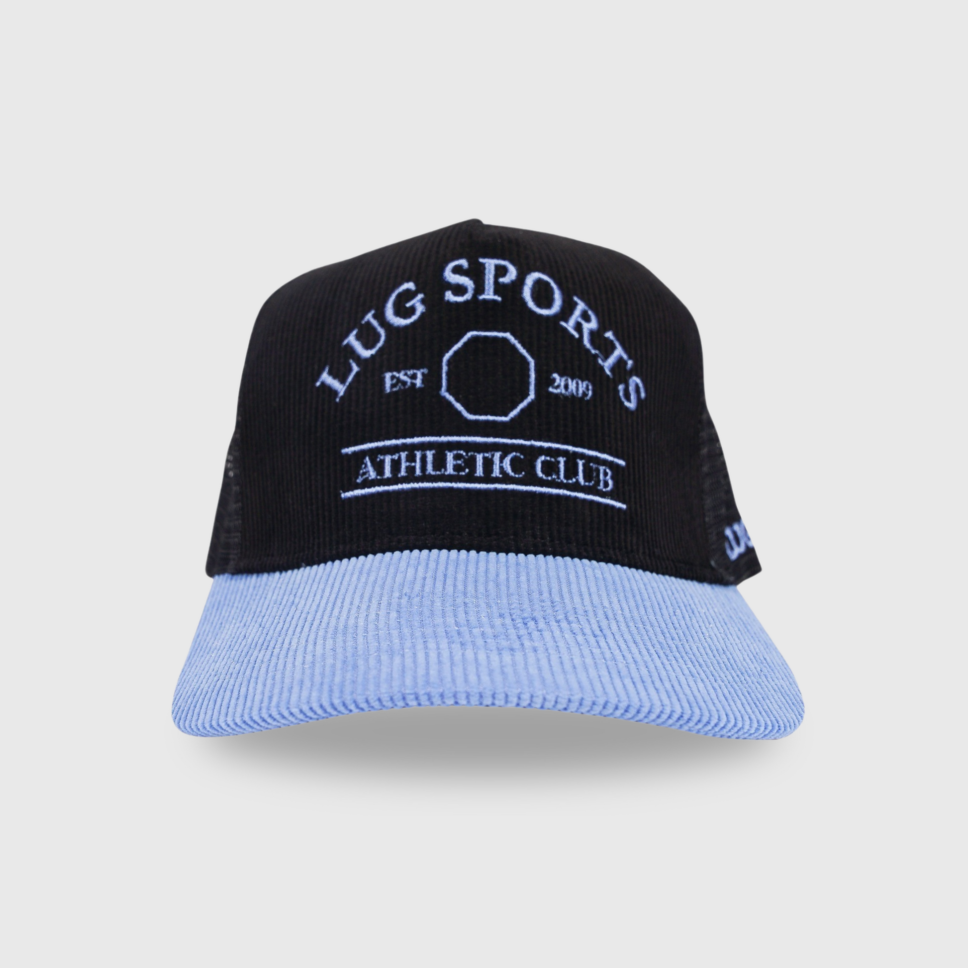 - Embroidered baby blue Lug Sports Athletic Club logo and adjustable snapback closure
